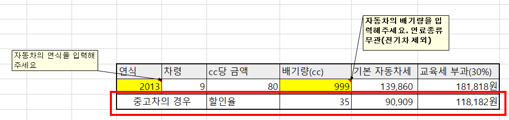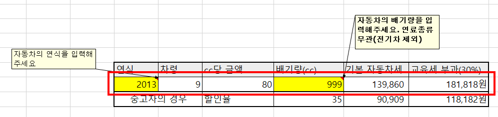 자동차세 쉽게 계산하는 방법 - 엑셀 함수 자동 계산 (중고차도 계산 가능)