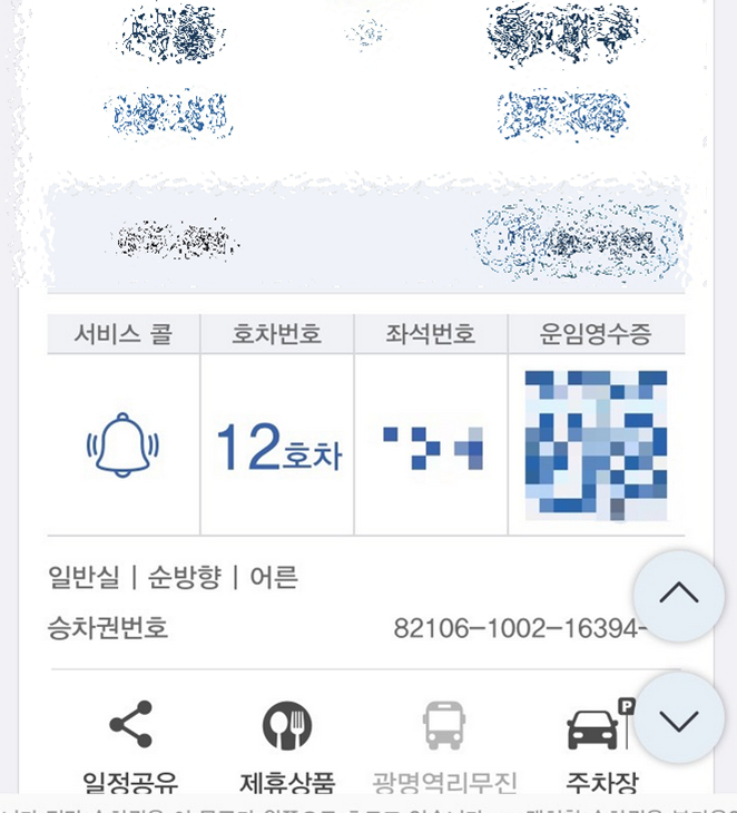 표를 구매하시고 열차에 탑승하면 위와같은 승차권 화면을 볼 수 있습니다.