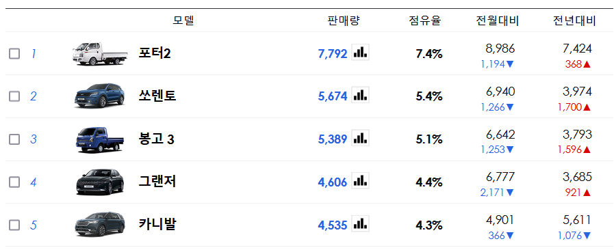 매달 자동차 판매량을 보면 항상 5위 안에는 드는 자동차가 바로 1톤 트럭인 현대 포터2, 기아 봉고3입니다.