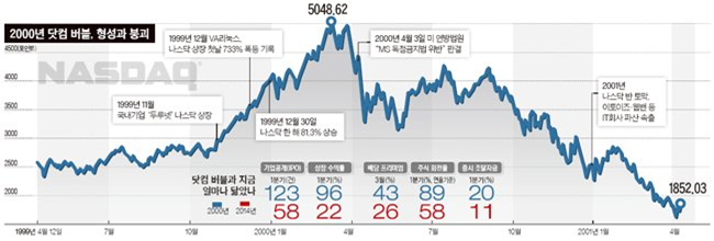 위 그래프는 닷컴버블때 나스닥지수를 나타낸 것입니다.