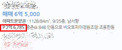네이버 부동산을 보다보면 P 2억 이렇게 쓰여있는 걸 볼 수 있습니다.