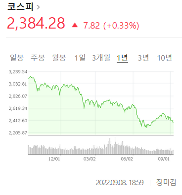 21년 말을 기점으로 코스피 지수가 지속적으로 하락하고 있습니다.