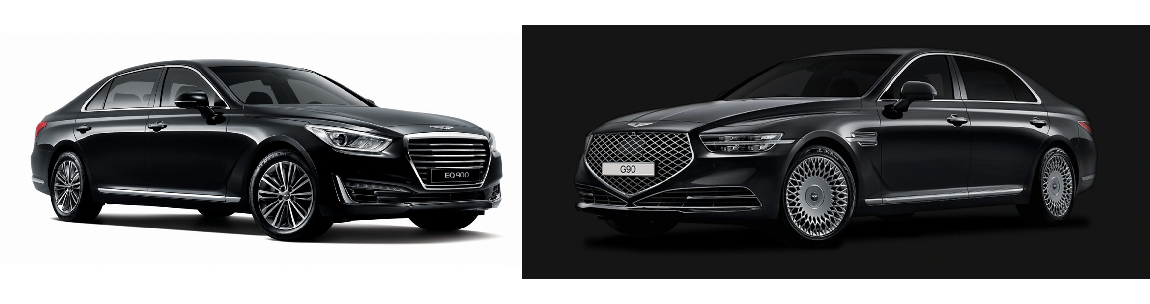 제네시스 EQ900과 제네시스 2세대 초기형의 디자인이 매우 유사합니다. 비슷한 시기에 출시되기도 했고, 제네시스라는 브랜드에 통일감을 주기 위함이었던 것으로 보입니다.
