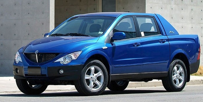 위 픽업트럭은 코란도 스포츠로, 정확히는 액티언 스포츠 후기형 모델로 생산되었던 자동차입니다. 픽업트럭이 아닌 SUV로 출시된 코란도 중에 이런 디자인을 가지고 있는 것은 없습니다.