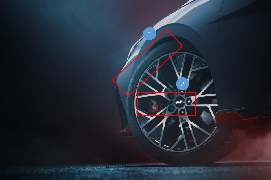 2. N 마크 - 붉은색 캘리퍼에다가 N 마크를 추가해서 '이거 스포츠카다~' 라고 뽐내는 듯한 디자인입니다. 그리고 타이어에도 N 마크가 붙어 있습니다.