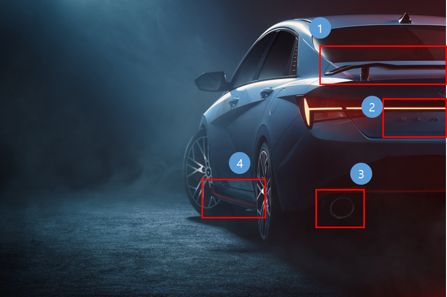 3. 배기구(머플러) 구경 증가 - 기존의 아반떼 N Line보다 훨씬 더 커진 배기구(머플러)