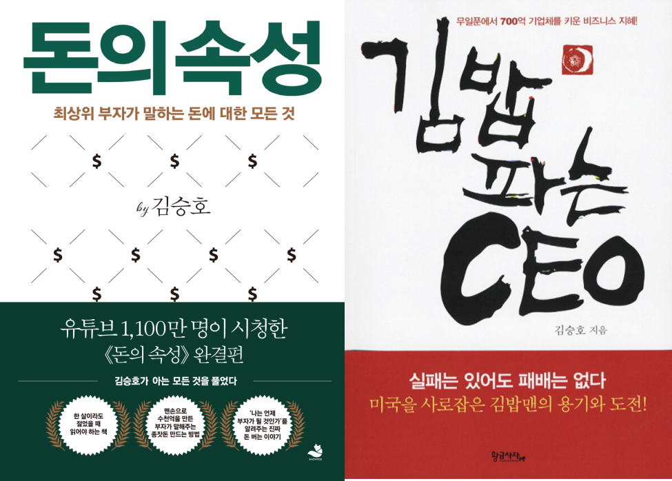 김승호 회장님은 돈의 속성, 김밥 파는 CEO라는 책을 쓰시고 우리에게 돈, 자본주의의 진실을 가르쳐 주시려애쓰셨습니다. 아래 두 책을 읽으면서 돈이 얼마나 중요한지 돈을 어떻게 다해야 하는지도 깨닫게 되었습니다.