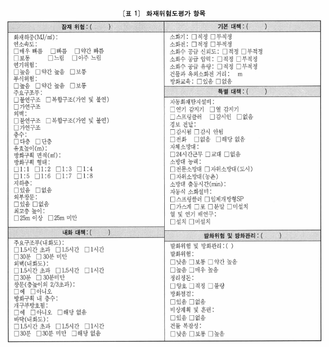 | 잠재 위험 | 활성위험 | 기본대책 | 특별대책 | 내화대책 |