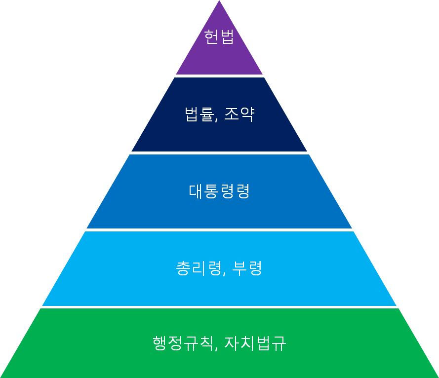 대한민국의 법 체계는 위 그림과 같습니다.
