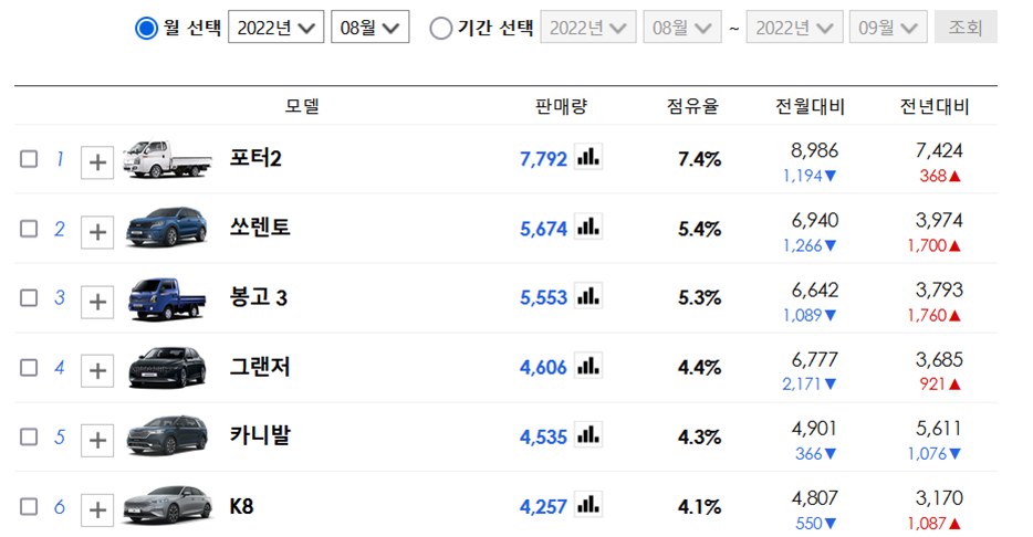 기아 봉고3는 매달 자동차 판매량에서 상위권을 차지합니다. 영업용으로 많이 사용되기 때문입니다. 거리에서 1톤 트럭이 많이 보이는 이유가 많이 팔리기 때문입니다.