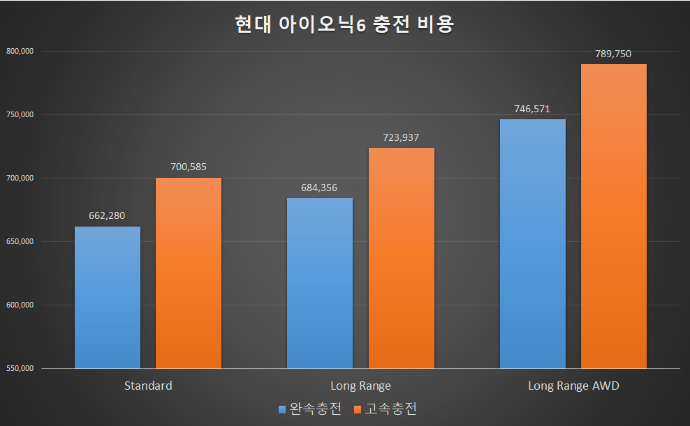 현대 2023 아이오닉6 충전 비용 비교 - 전기차