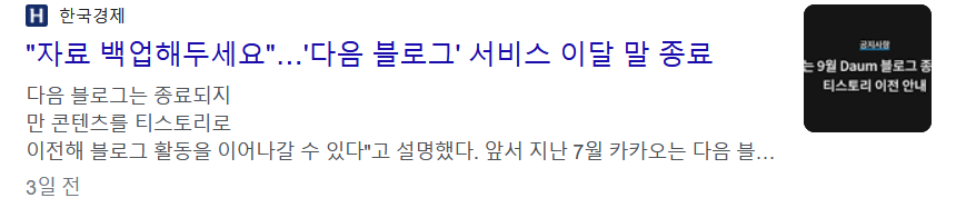 기사를 통해 안타까운 소식을 듣게 되었습니다. 다음 블로그가 서비스를 종료한다고 합니다.