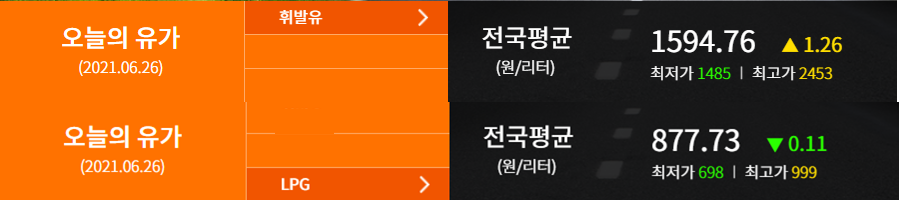 연료가격 기준은 2021.06.26 (출처: 한국석유공사 오피넷)