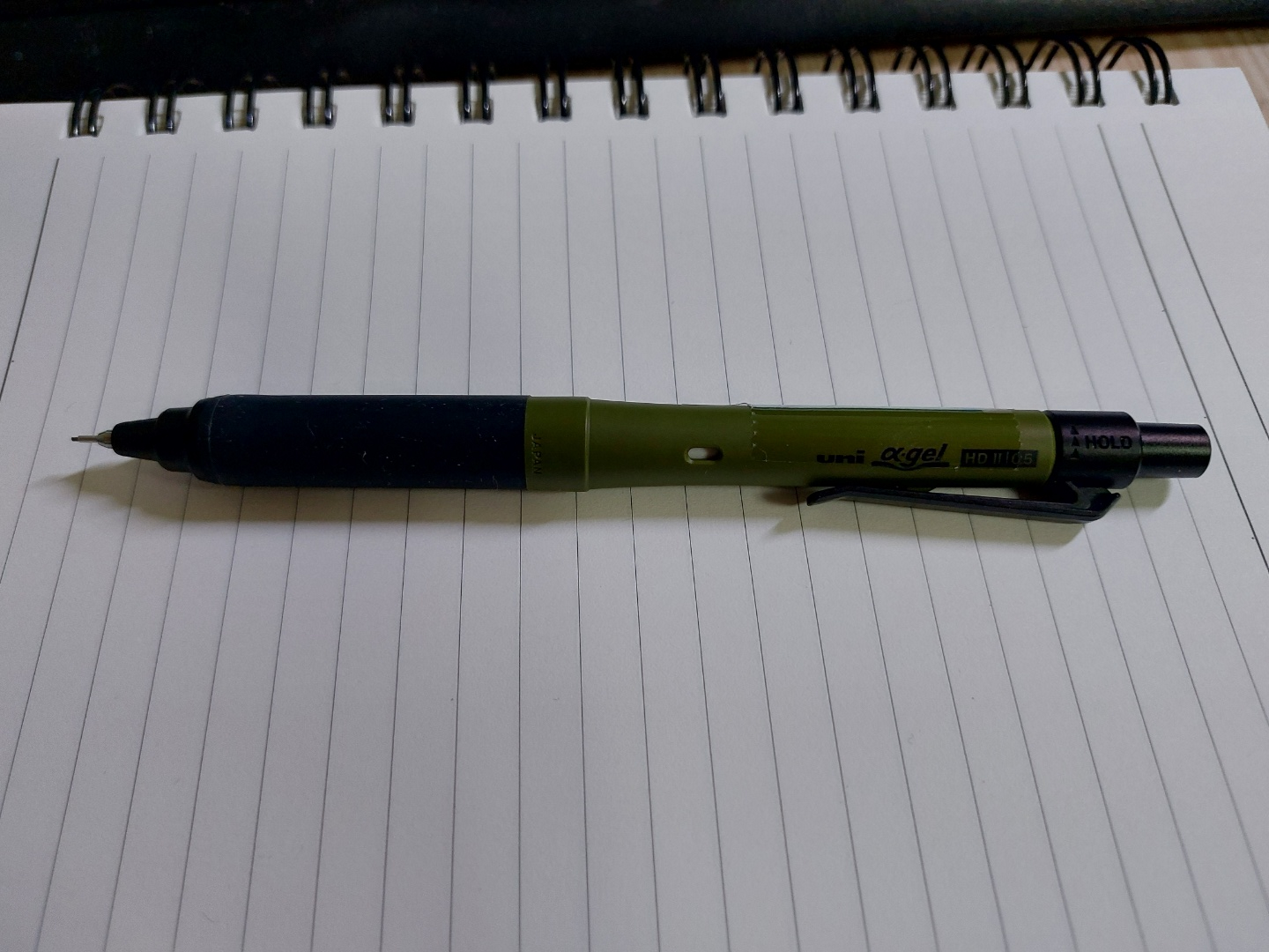 거기에 쿠루토가 기능까지 탑재되어 있어서 부드러운 그립감과 균일한 글씨 굵기가 나오게 됩니다. 이번에 유니에서 참 잘 만든 것 같습니다. 확실히 알파겔 덕분에 손의 피로도가 상당히 줄어듭니다. 저 처럼 샤프를 많이 쓰는 사람한테는 정말 이만한 게 없습니다.