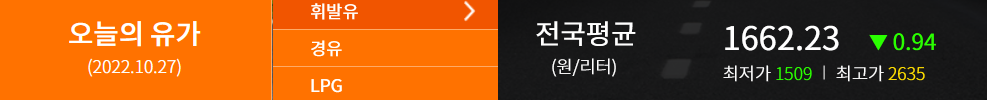 연료가격 기준은 2022.10.27 (출처: 한국석유공사 오피넷)