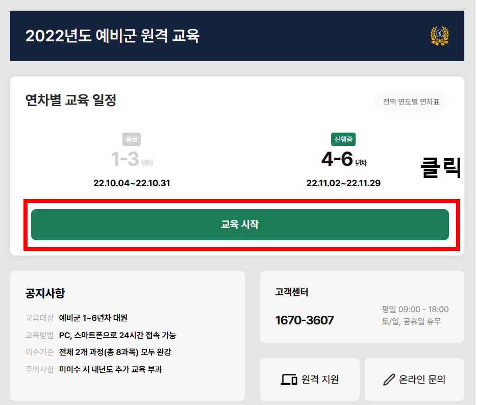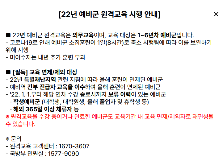 2022년 4~6년차 예비군 원격교육 수강 (안들으면 내년에 추가교육)