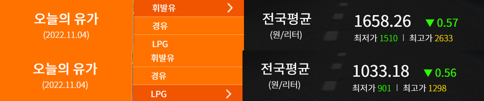 유가는 2022년 11월 4일 기준 오피넷을 참고하였습니다.