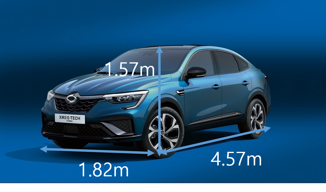 앞뒤 크기는 기아 니로 하이브리드가 더 크지만, 차 높이는 현대 코나 하이브리드가 더 높습니다. 니로도 꽤 큰편이지만 전고, 전장이 XM3가 가장 큽니다.