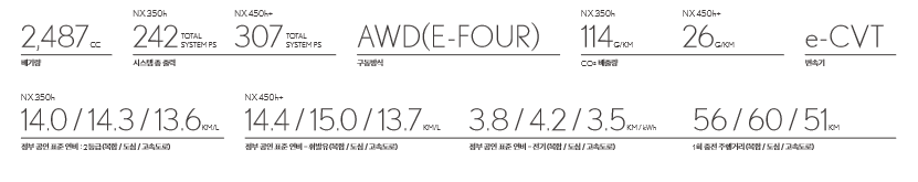 | 렉서스 NX 350h 하이브리드 | 렉서스 NX 450h 하이브리드 |