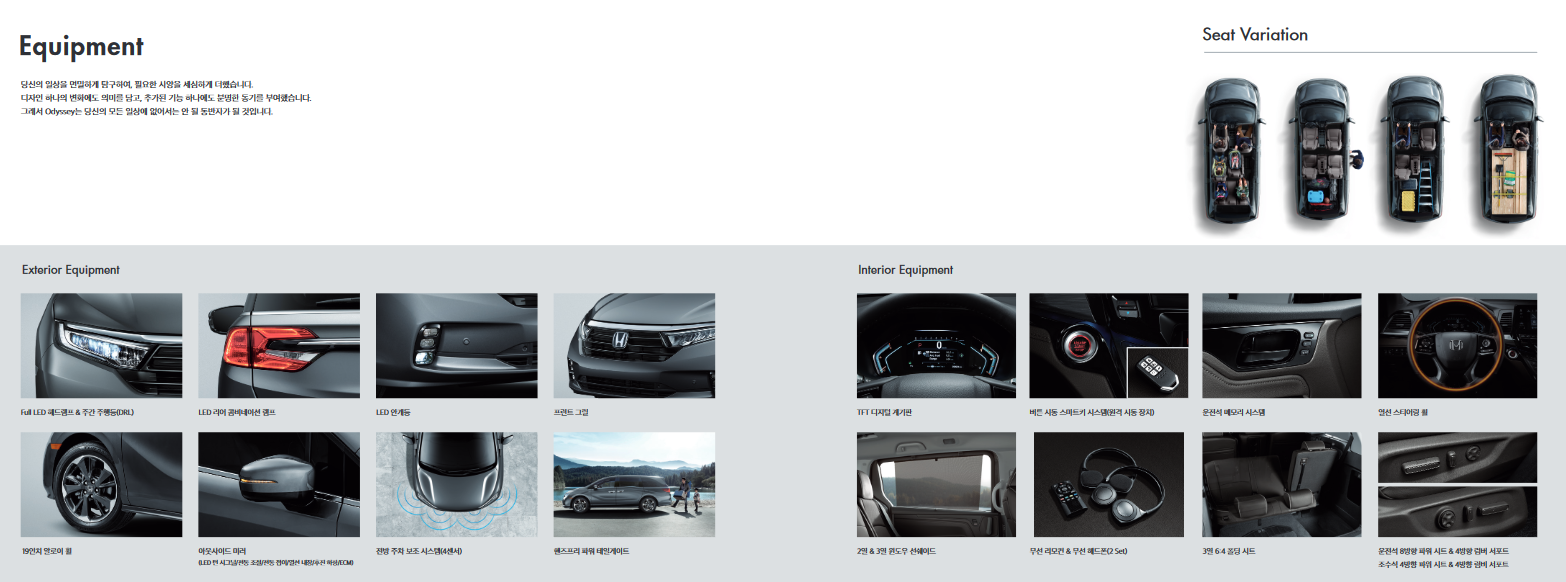 이상으로 혼다 오딧세이 연비, 가격, 제원을 알아보았습니다. 혼다 오딧세이 카탈로그 용량이 커서 포스팅에 올릴 수 없네요. 혼다 오딧세이 카탈로그 다운받을 수 있는 사이트 링크 걸어두겠습니다.