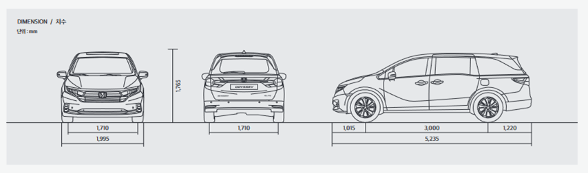 MPV에서 중요한 전장(차의 길이)는 혼다 오딧세이가 5,235mm로 가장 깁니다. 의외로 기아 카니발보다 현대 스타리아 전장이 더 크네요.