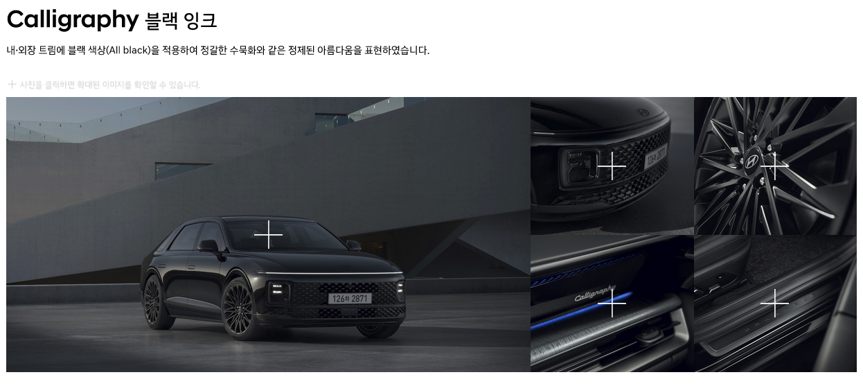현대 그랜저 gn7 하이브리드 (그랜저 7세대)그리고 현대 그랜저 gn7 하이브리드 캘리그래피 트림에는 블랙잉크 전용이라고 해서 special color가 있습니다. 타이어휠부터 그릴까지 모두 검정색으로 매우 고급스런 느낌을 줍니다. 진짜 멋지고 웅장함이 느껴지네요. 무채색을 좋아하는 한국인에게는 딱 좋은 special color가 아닐까 싶습니다.
