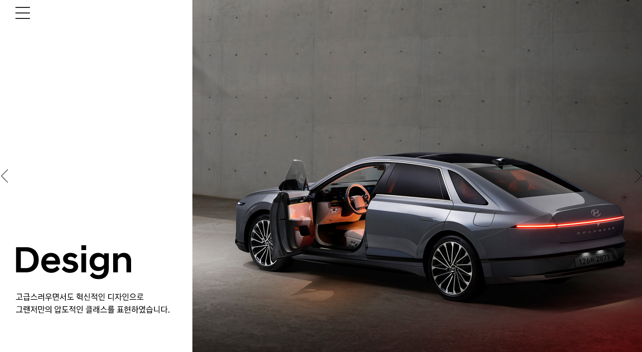 세상의 기대와 예상을 뛰어넘어 스스로를 혁신한 그랜저. 전통과 미래, 세대와 취향, 기술과 감성의 경계를 지운 새로운 경험을 선사합니다.