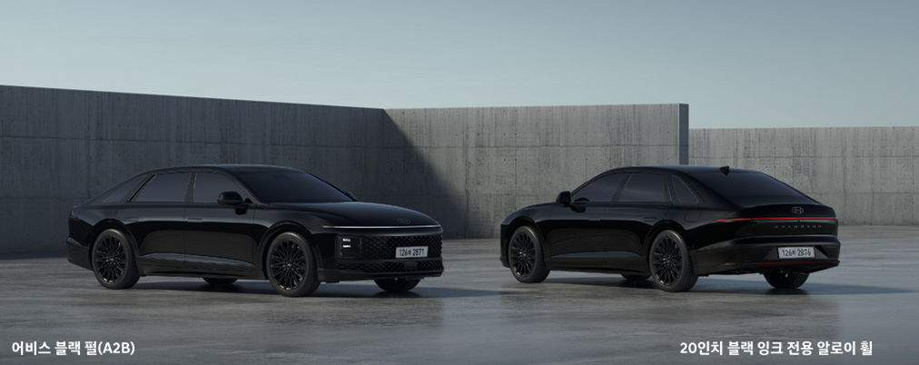 현대 그랜저 gn7 하이브리드 (그랜저 7세대)그리고 현대 그랜저 gn7 하이브리드 캘리그래피 트림에는 블랙잉크 전용이라고 해서 special color가 있습니다. 타이어휠부터 그릴까지 모두 검정색으로 매우 고급스런 느낌을 줍니다. 진짜 멋지고 웅장함이 느껴지네요. 무채색을 좋아하는 한국인에게는 딱 좋은 special color가 아닐까 싶습니다.
