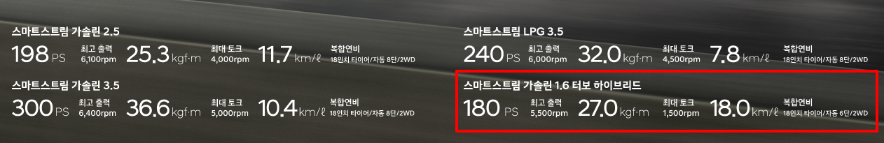 현대 그랜저 gn7 하이브리드 제원
