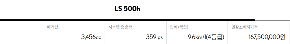 | 8,957 만원 (LS 500h 하이브리드보다 5,793만원 저렴) |