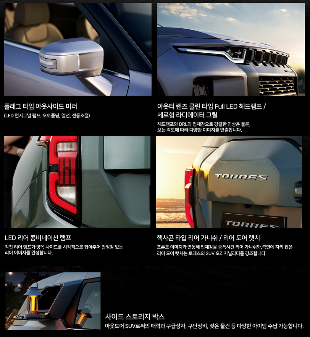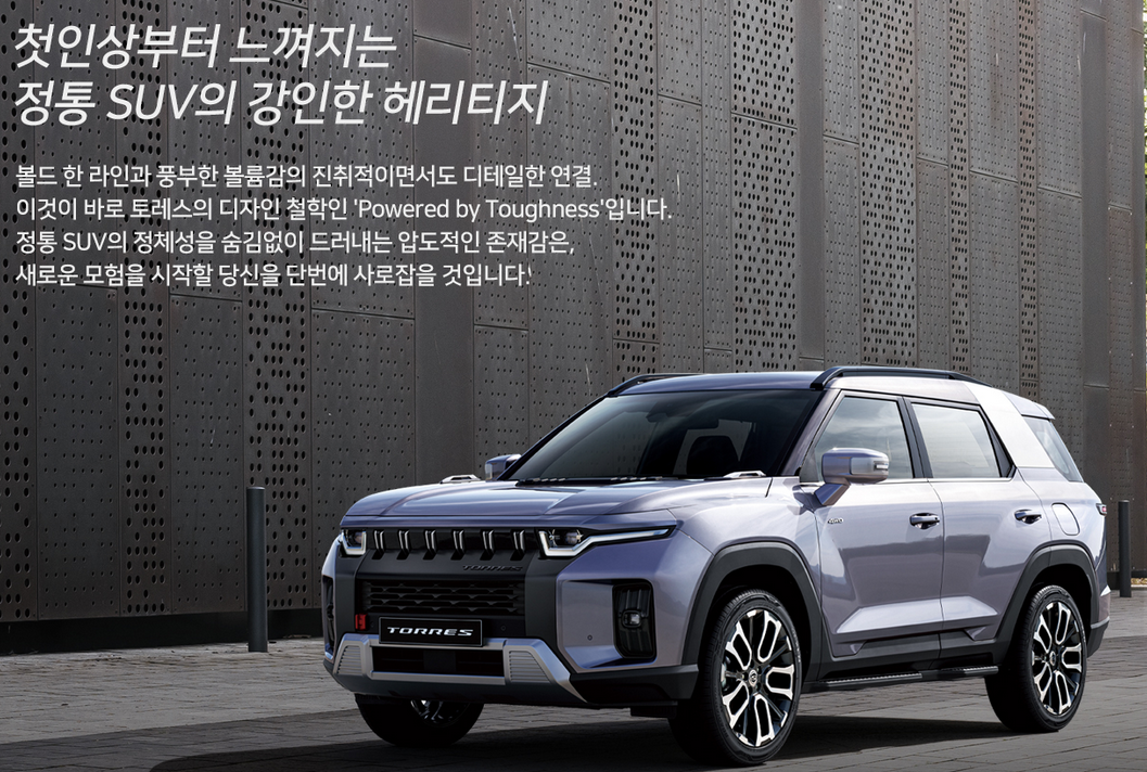 쌍용 토레스는 중형 SUV인데도 친환경 정책에 맞춰 가솔린 모델만 출시하였습니다. 쌍용 토레스의 경쟁 모델인 현대 싼타페, 기아 쏘렌토, 르노코리아 QM6는 디젤 모델도 있습니다. 차별화를 두기위한 쌍용자동차의 전략이 아닐까 생각합니다.