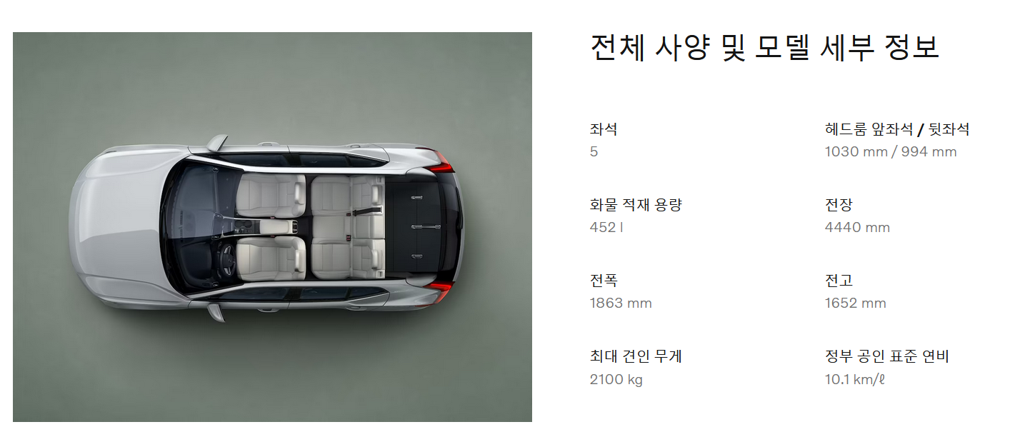 | 10.3km/L (볼보 XC40 보다 2% 연비 좋음) |