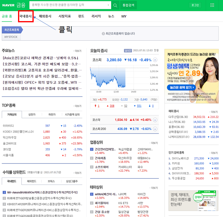 이번 포스팅에서는 국내 주식 시가총액 순위 보는 법을 알아보겠습니다.