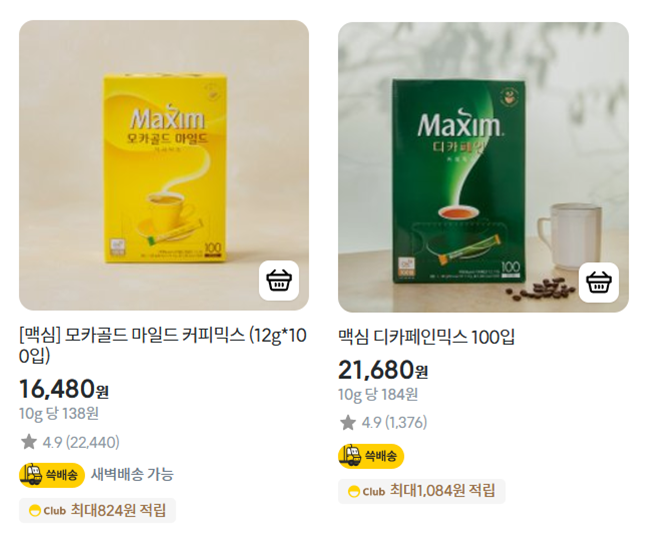| 맥심 디카페인 커피믹스 | 맥심 모카골드 마일드 커피믹스 |
