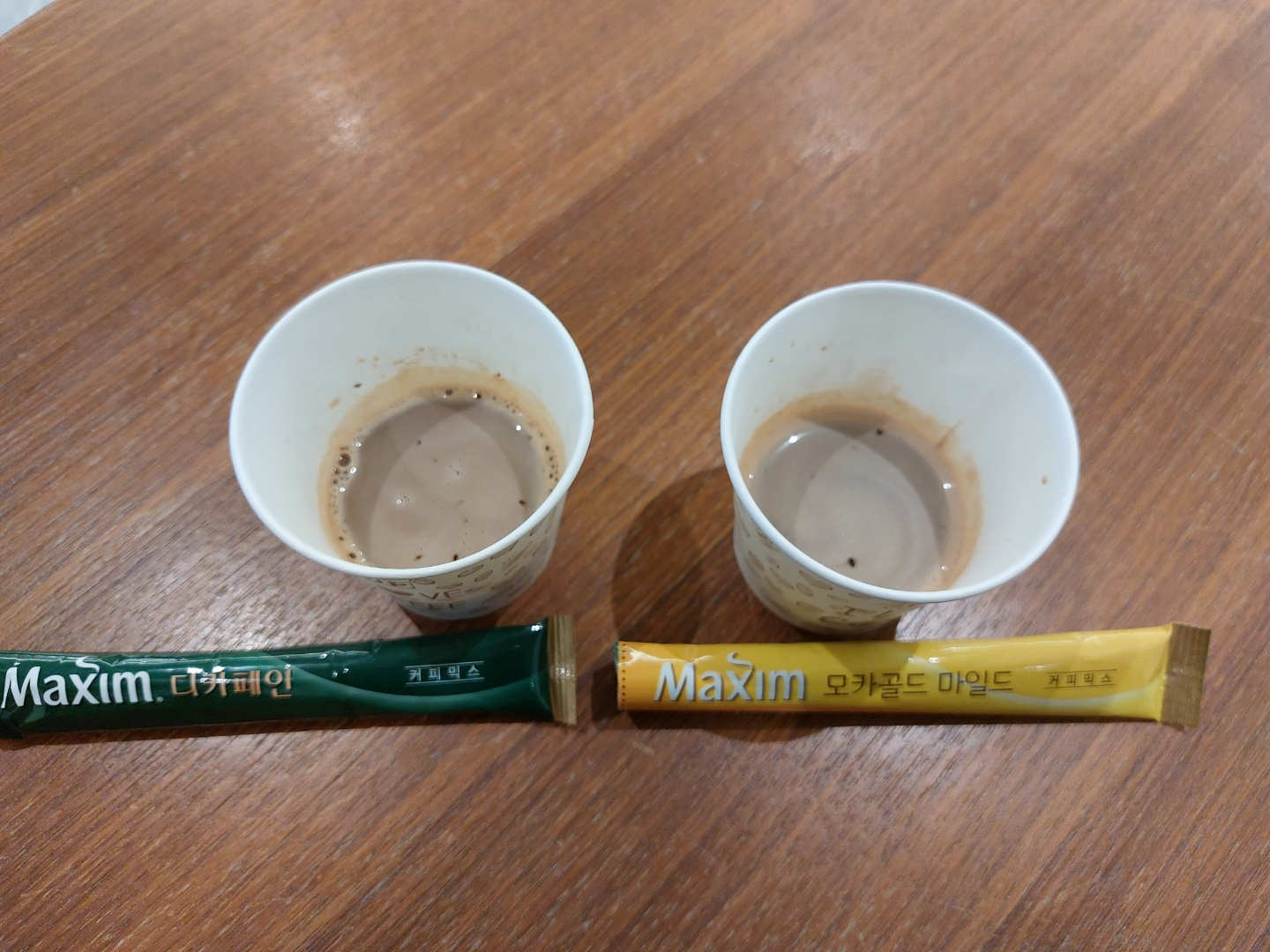 이번 포스팅에서는 맥심 디카페인 커피믹스와 한국인이 제일 많이 마시는 커피믹스인 맥심 모카골드 마일드 커피믹스(노란거)와 비교해보겠습니다.