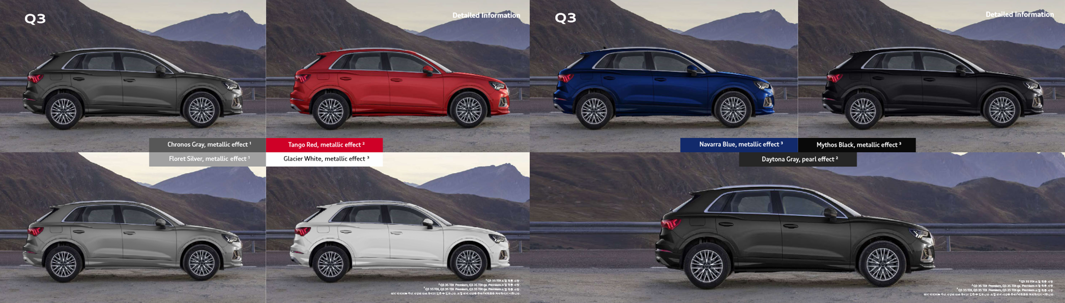 이상으로 아우디 Q3 35TDI 연비, 가격, 제원에 대해 알아보았습니다. 더 자세한 사항은 아우디 Q3 35TDI 카탈로그를 참고 바랍니다.
