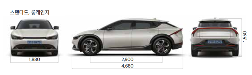 경쟁 모델이라 할 수 있는 기아 EV6와 크기를 비교해보니 길이는 기아 EV6가 더 길고 높이는 현대 아이오닉5가 더 높습니다. 좀 더 높은 차량을 원하신 다면 현대 아이오닉5를 긴 차량 길이를 원하신다면 기아 EV6를 추천드립니다.