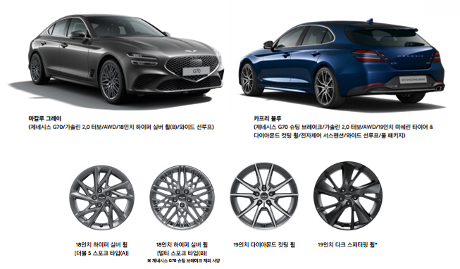 이상으로 제네시스 G70 연비, 가격, 제원에 대해 알아보았습니다. 더 자세한 사항은 제네시스 G70 카탈로그를 참고바랍니다.