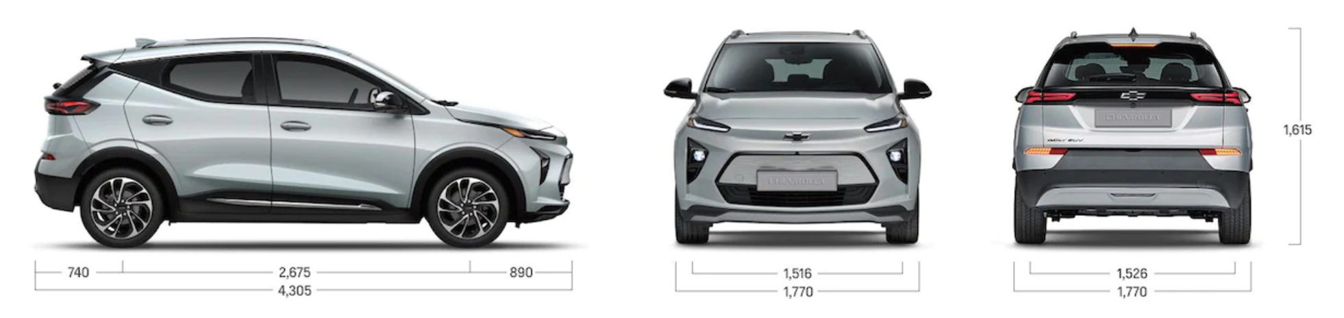 차이점이 보이실까요? 볼트 EV는 트렁크룸이 작고 크기도 더 작습니다. 볼트 EUV는 SUV로 분류되는 만큼 크기도 더 큽니다