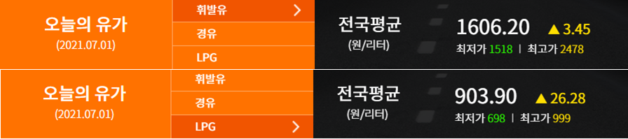 연료가격 기준은 2021.07.01 (출처: 한국석유공사 오피넷)