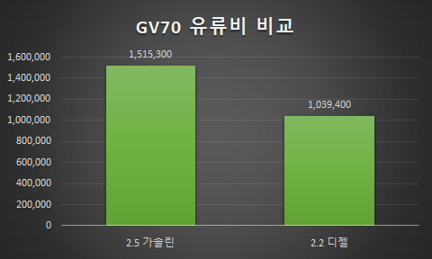 제네시스 GV70 가솔린, 디젤 유류비 비교 - 후륜구동 모델