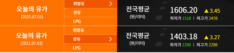 연료가격 기준은 2021.07.01 (출처: 한국석유공사 오피넷)