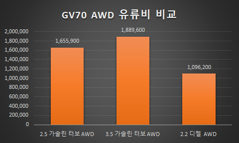 https://ikkujun.com/134 - GV70 후륜구동 모델 유류비 비교