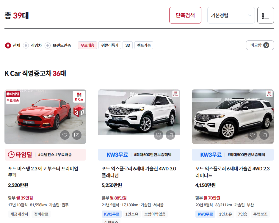 이상으로 포드 토러스 자동차세를 알아보았습니다. 현재 준대형 세단인 포드 토러스는 단종되었습니다. 중형 세단으로 다른 국가에서는 판매되고 있지만 한국에서는 더 이상 포드 토러스를 보기 힘들어졌습니다. SUV가 인기가 많아지면서 포드에서도 SUV 위주로만 판매를 하고 있습니다. 포드 머스탱, 포드 레인저는 최근에 풀체인지가 출시되기도 했습니다. 포드 브랜드 자동차는 케이카에서 39대 정도 검색이 됩니다. 주로 포드 익스플로러, 포드 머스탱입니다. 특히 포드 익스플로러는 준대형 SUV로 페밀리카로 인기가 많은 SUV 중 하나입니다. 감사합니다.