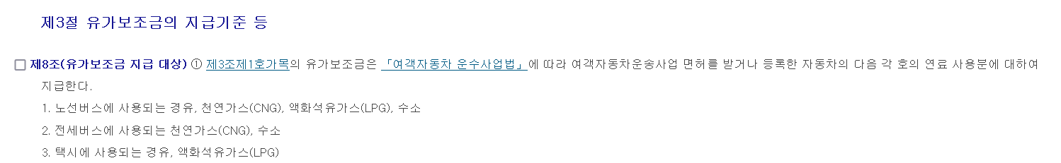 1.휘발유, 경유 이외 차량(수소, LPG, CNG 등)은 유가보조금을 받을 수 있다.