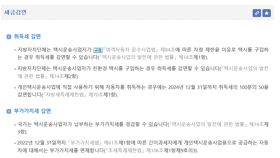 1. 택시(영업용 차량) 구매시 세금이 면제