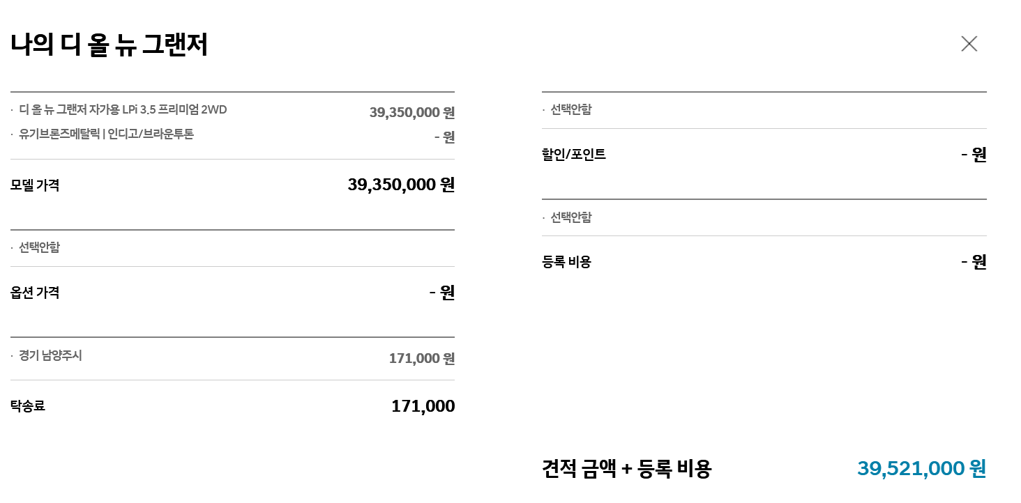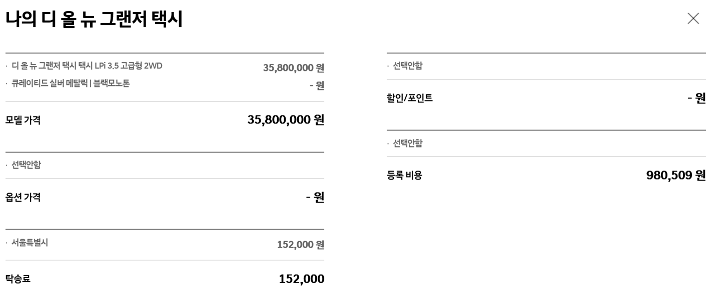 | 현대 그랜저 3.5 LPi 자가용 구매 | 현대 그랜저 3.5 LPi 영업용 구매 (택시) |