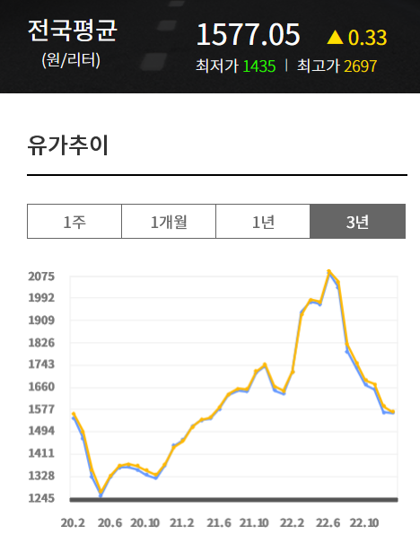 | 유가보조금 : 리터당 155.05원