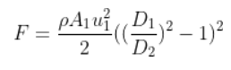 $F = \frac{\gamma A_1Q^2}{2g}(\frac{A_1-A_2}{A_1A_2})^2$