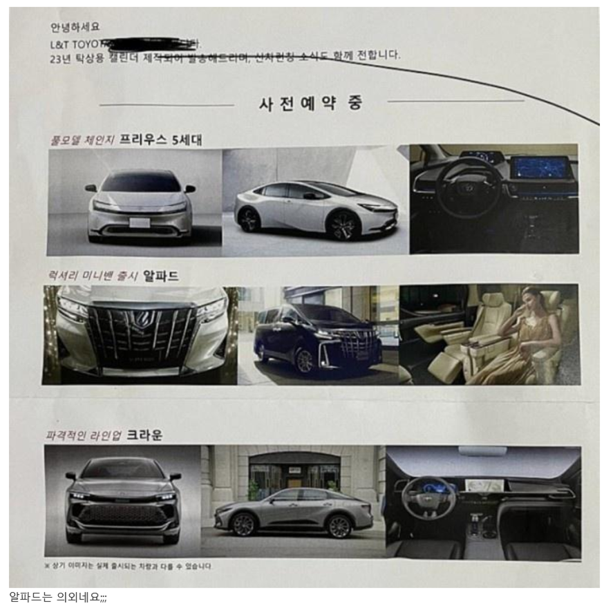 이상으로 토요타 알파드 자동차세를 알아보았습니다. 토요타 알파드와 같이 일본 제조사의 MPV 차량은 혼다 오딧세이와 토요타 시에나가 있습니다. 현재 두 차량 모두 국내에서 판매되고 있습니다. 한 커뮤니티 사이트에 올라온 글을 보면 토요타에서 비공식적으로 토요타 알파드 사전계약 신청을 받고 있다고 합니다. 개인적으로 토요타 알파드는 좀 과한 디자인이라 한국에서는 수요가 별로 없을 것 같습니다. 차라리 렉서스 LM을 수입하는 게 더 나을 거라 생각합니다.